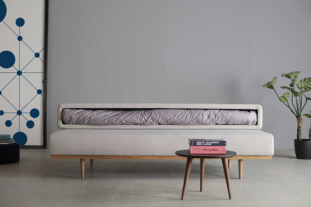 Her er VANADIS Daybed fra Innovation Living som er deres fortolkning af den klassiske 50´er briks med sengetøjsmagasin i ryggen. VANADIS daybed er en enkel og stilren daybed, som let kan konverteres til en soveplads for en person.