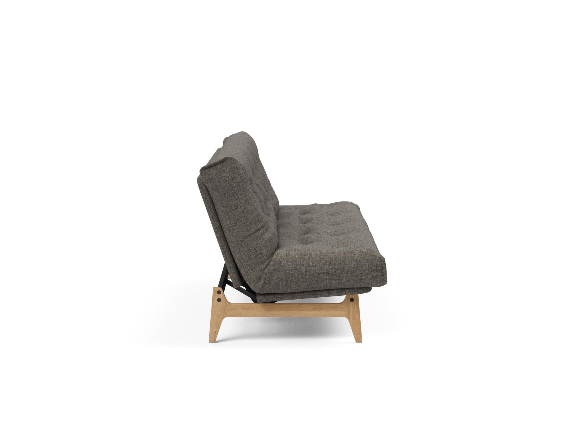 Et alsidigt sovesofadesign med en nordisk attitude forstærket af lakerede egetræsben og høj funktionalitet, der er udformet til lang levetid.
