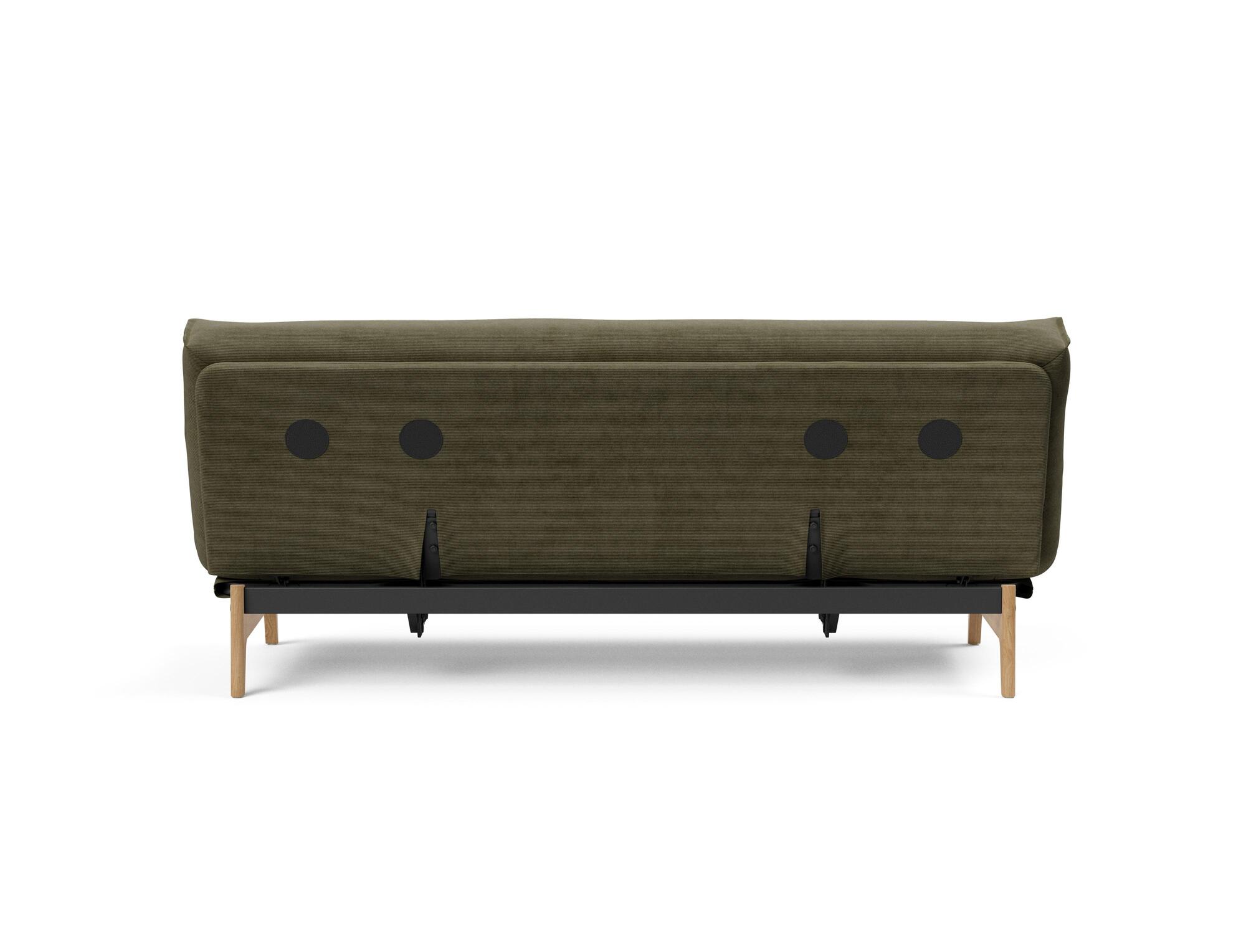 Et alsidigt sovesofadesign med en nordisk attitude forstærket af lakerede egetræsben og høj funktionalitet, der er udformet til lang levetid.
