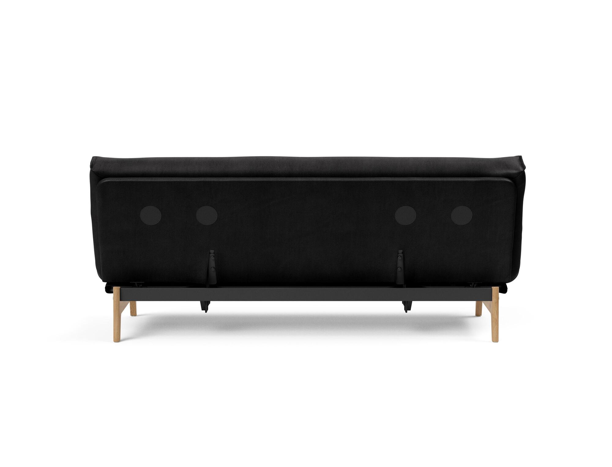 Et alsidigt sovesofadesign med en nordisk attitude forstærket af lakerede egetræsben og høj funktionalitet, der er udformet til lang levetid.