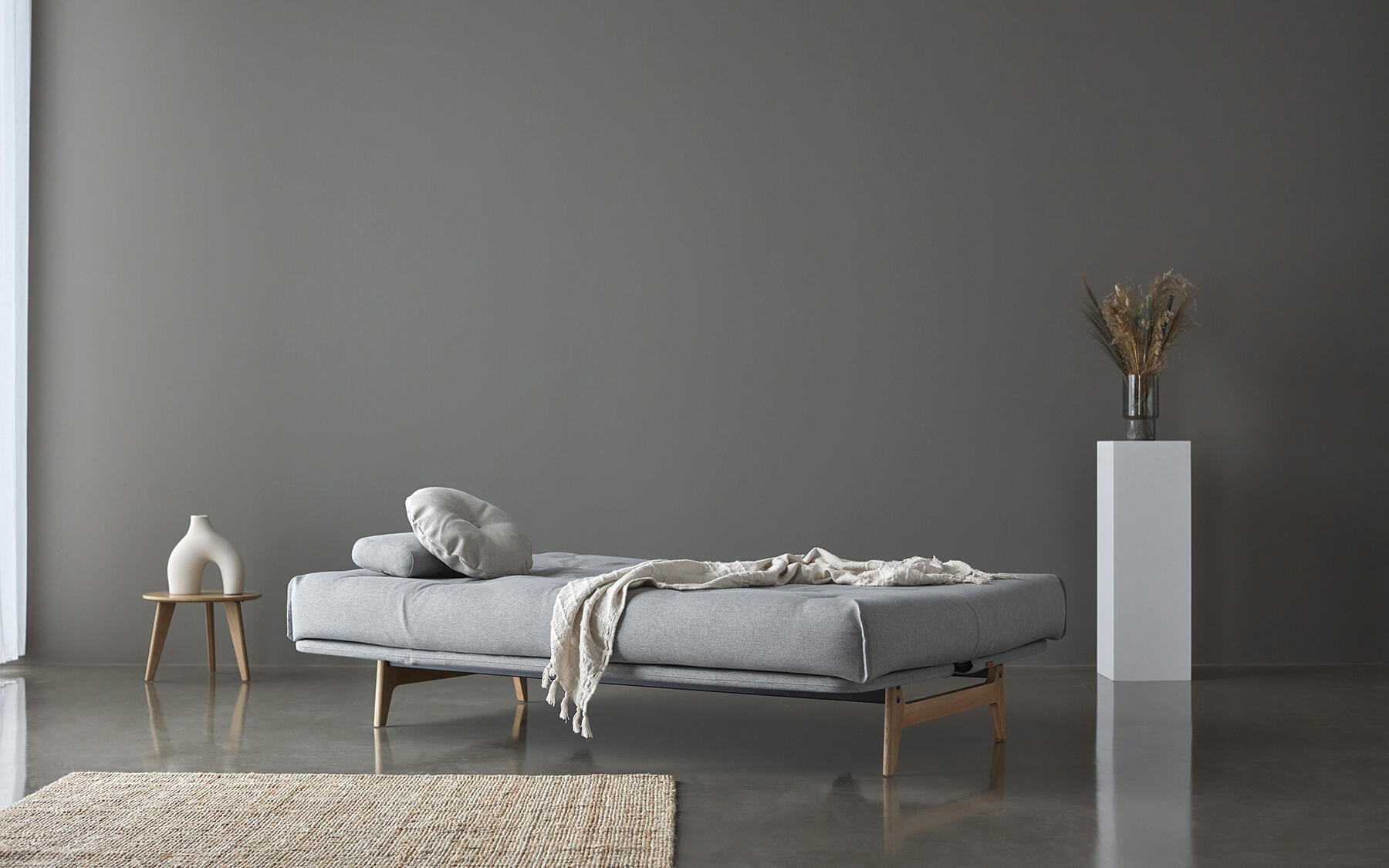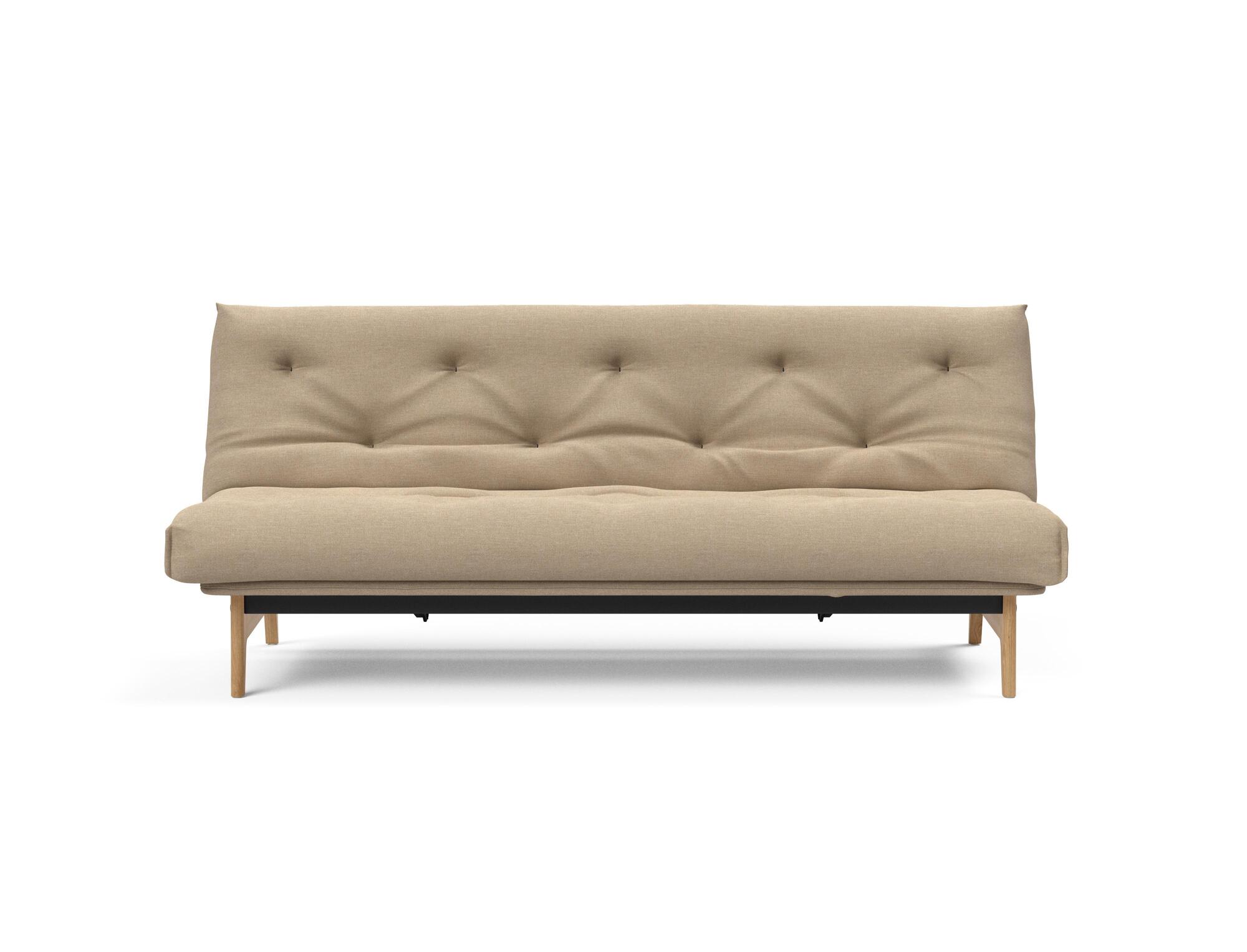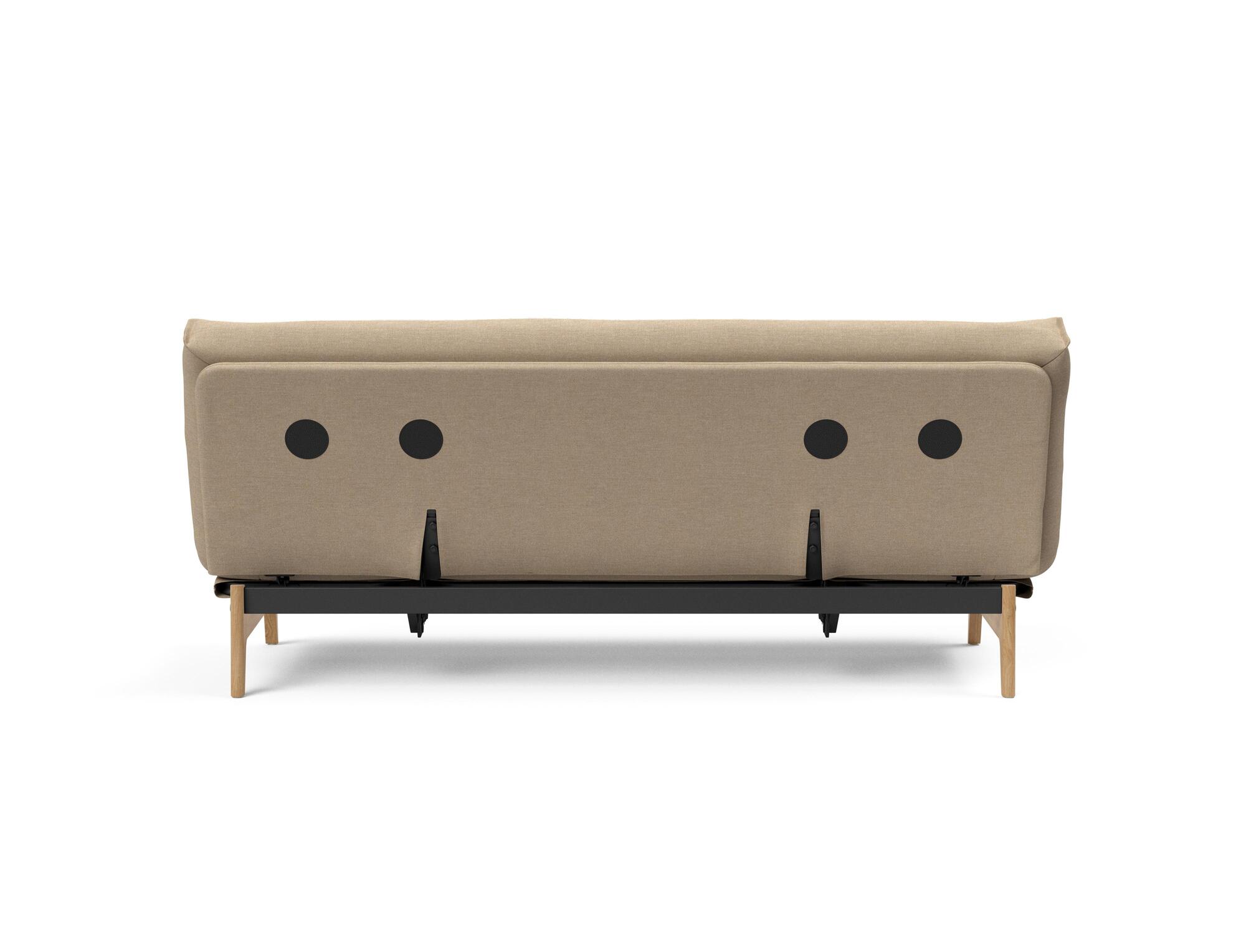 Et alsidigt sovesofadesign med en nordisk attitude forstærket af lakerede egetræsben og høj funktionalitet, der er udformet til lang levetid.