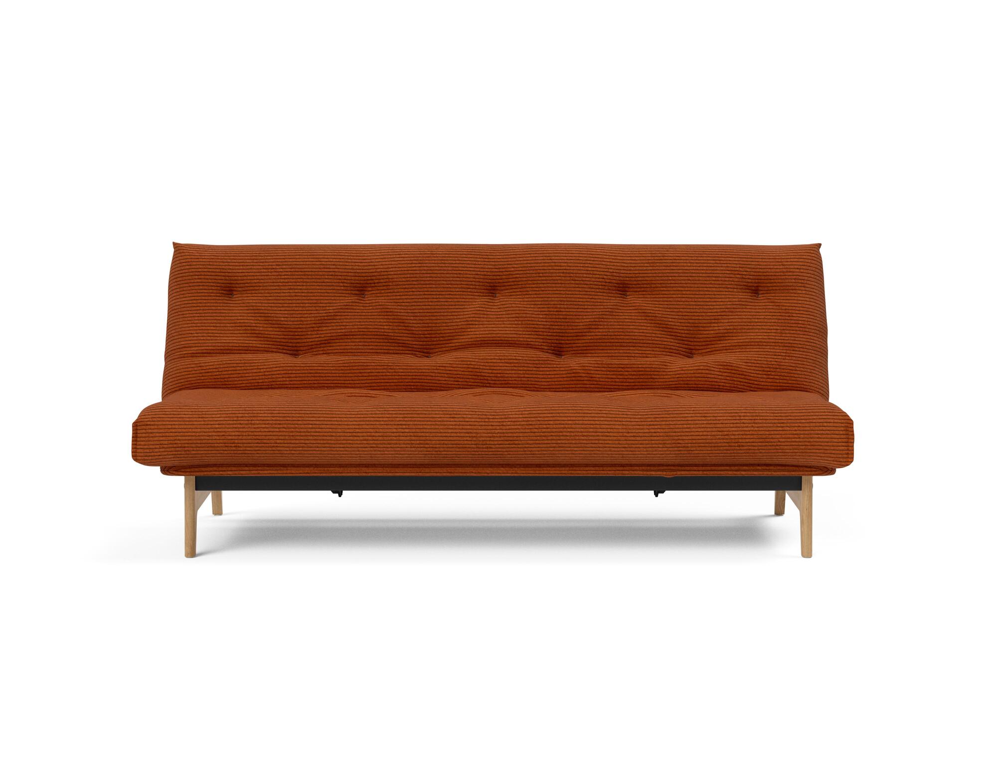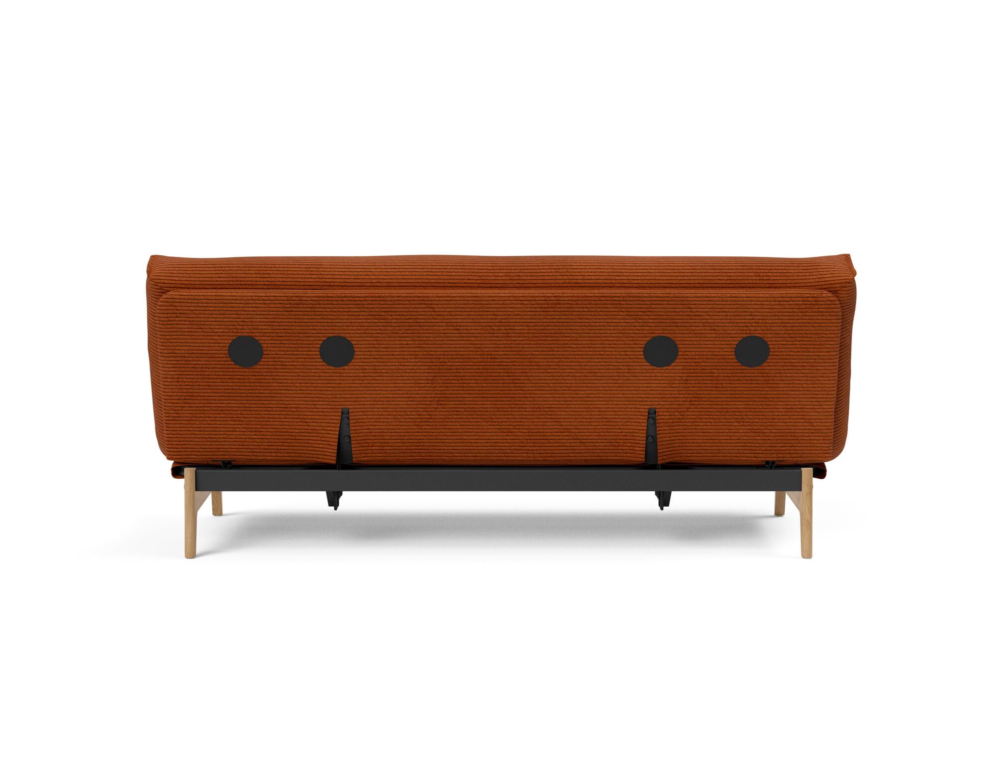 Et alsidigt sovesofadesign med en nordisk attitude forstærket af lakerede egetræsben og høj funktionalitet, der er udformet til lang levetid.