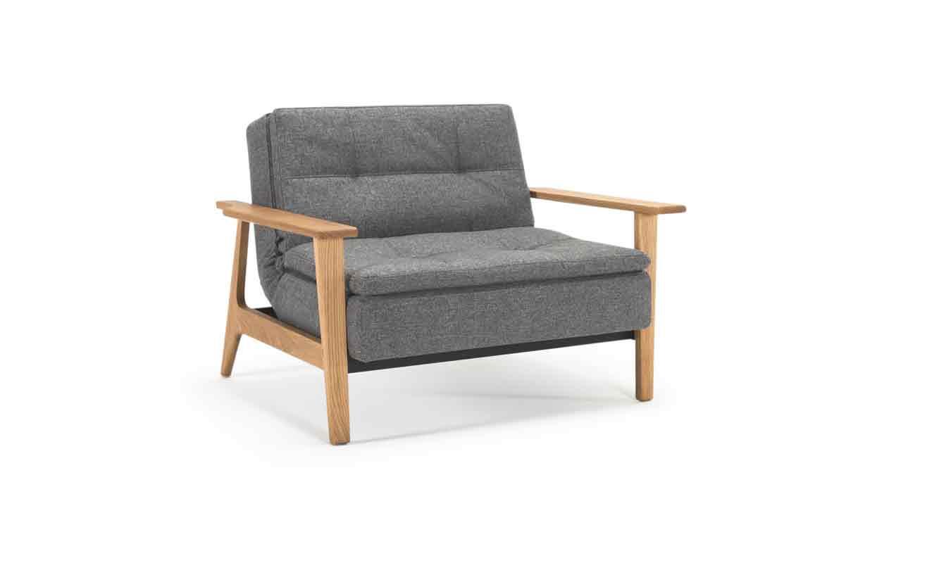 DUBLEXO stol stylish armchair with comfortable Splitback function. Armrests in natural lacquered oak.