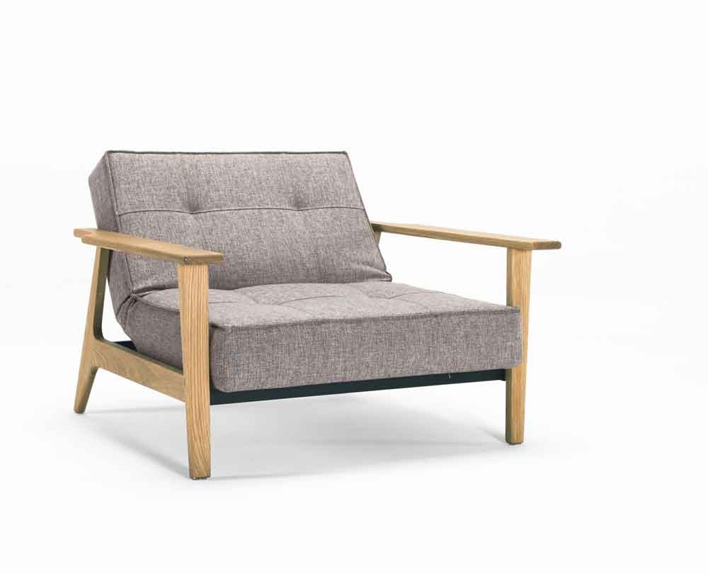 Stylish armchair with comfortable Splitback function. Armrests in natural lacquered oak.