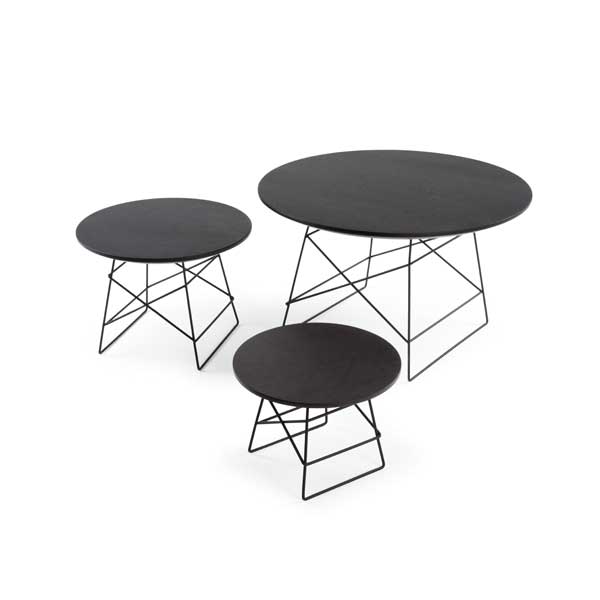 GRID Table/Borde Sortbejdset eller Natur egefiner bordplade og ben i sort pulverlakeret stål.