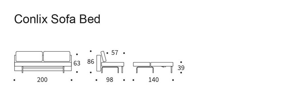 Conlix features detachable washable covers which is easy and simple to detach and reattach with a unique zipper design. Conlix sofa eliminates the worries in relation to the combination of small children and sensitive fabrics, as the cover is washable at 30 degrees Celsius. Moreover, this feature is a result that prolongs the lifetime of the product as new covers can be purchased if the existing is worn out or the interior needs a fresh new color. Simply buy a new cover, not a new sofa. Conlix sofa measures 140x200 cm in bed position which it is easily converted in to. Slide out the seat, flip down the backrest and you have a double bed. A spot for a comfortable rest for two persons.