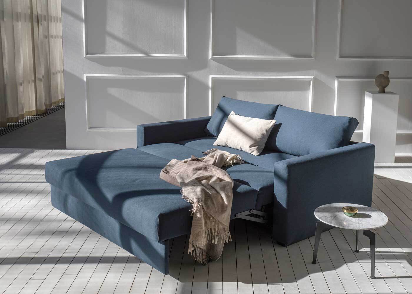 Cosial is partly based on the working principle of other sofa bed models from Innovation Living's Compact category. It has a horizontal seat, vertical back and envelope-style cushions. An easy way to fold from sofa to bed which makes it a unique piece of furniture that automatically folds out the legs, which simply provides a large and comfortable sleeping surface for two people. In addition, it is a suitable sofa for three people and guest bed for two when you have friends or family to stay overnight. Available in three compact sizes - 80, 140, 160 cm and 180 cm.