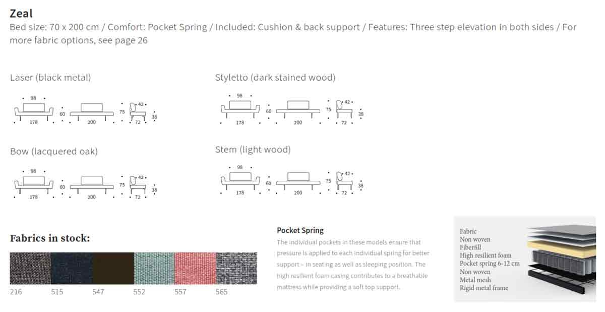 ZEAL Daybed / sofa 70x200cm. Dess.565 Granite. See all "Innovation Living" textiles click here.