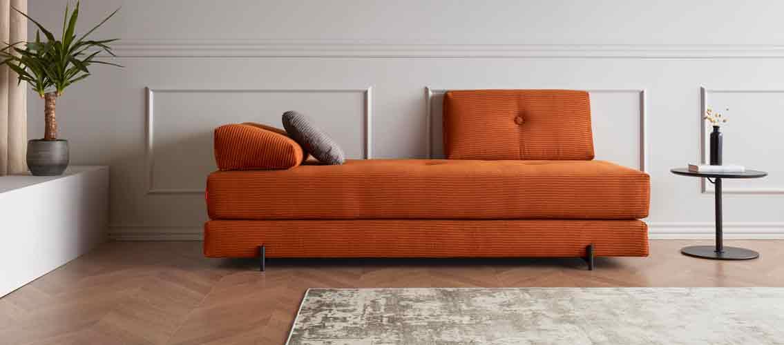 Flexibility characterizes the Sigmund daybed as the possibilities are almost endless. It enables you to pull down the upper mattress and place it against the other, effectively creating a king size bed. Sigmund also offer the option to separate the two 80 x 200 cm mattresses into single beds appropriate to be placed apart and in different rooms even. The mattresses hold a durable composition provided by pocket spring comfort that gives an even, supportive comfort. Anti-glide fabric under the mattress ensures the mattresses will not slide apart, and the two movable cushions provide proper lounging while resting, relaxing and napping.