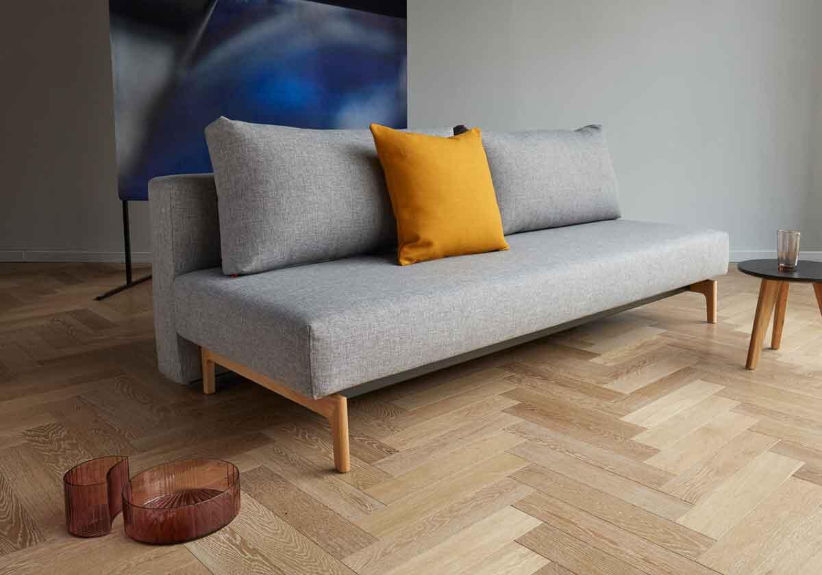 Trym is a youthful, Nordic designed sofa bed with sleek, minimalistic lines and natural oak legs. Trym is adapted to overcome the challenge of living on few square meters without compromising size, style or comfort..