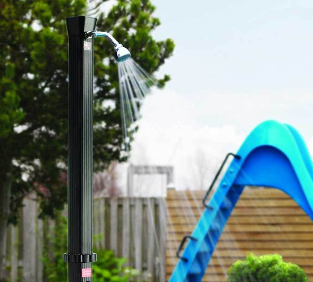 Denne solbruser har hele 20 liters varmtvandsbeholder, så du kan nyde en tur under det varme vand inden du hopper i poolen. Hopper du direkte i poolen, tilfører du poolvandet op til 200 gange flere bakterier, end hvis du skyller dig under en havebruser først.