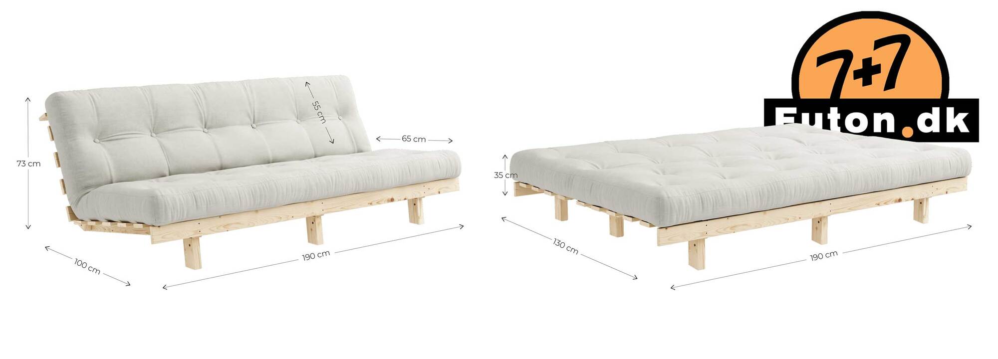 Lean Futon sovesofa stel 130*190 cm. Inklusiv madras. Se tekstil foto ~ stof kvaliteter (Tryk her)