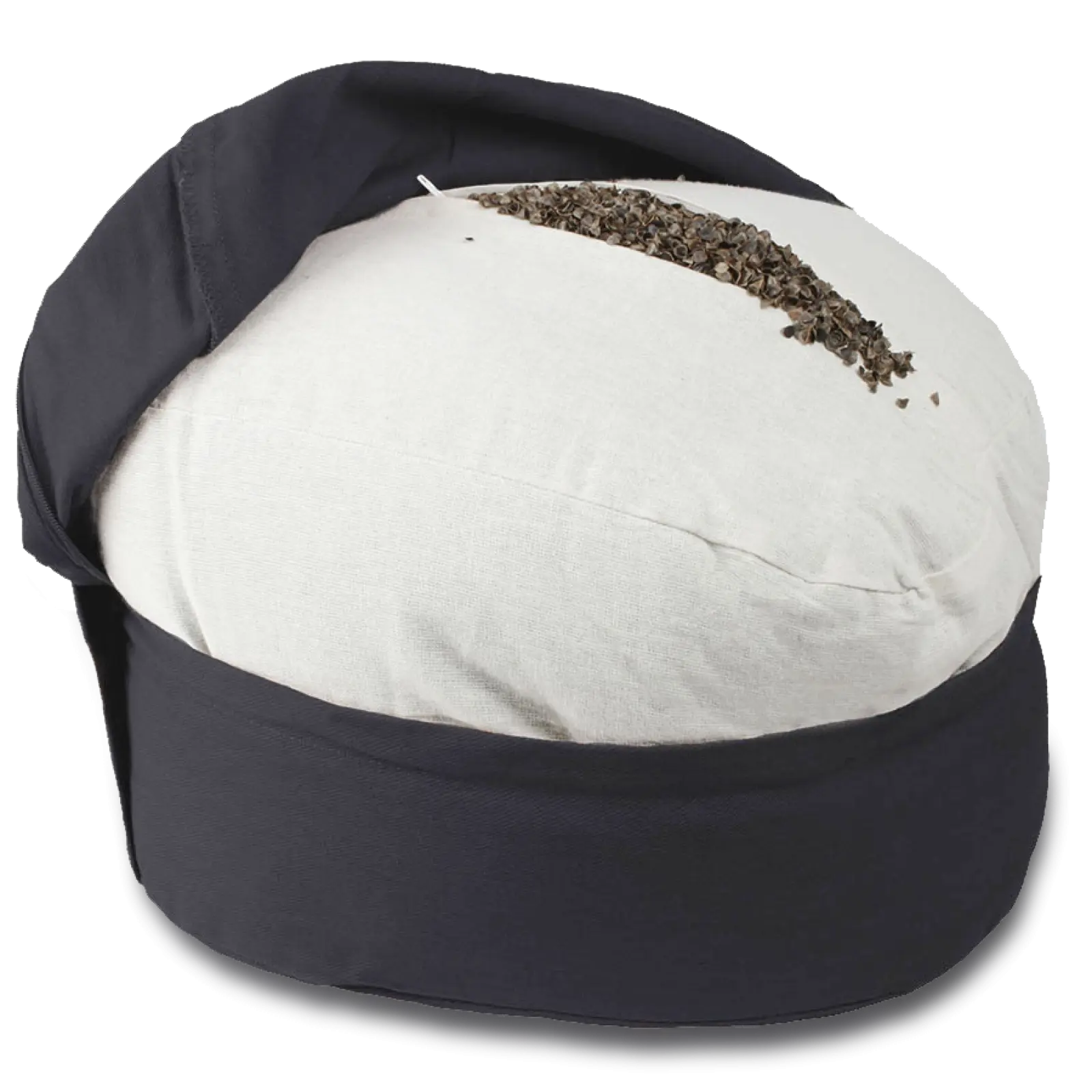 Inderpude fyldet består af økologisk boghvedeskaller. Skallerne tilpasser sig optimalt til din siddeholdning. Giver en god støtte. Inderpude-betrækket i 100% bomuld, forsynet med en lynlås, så er det let at tilpasse fyldningen til ens personlige behov for højde.