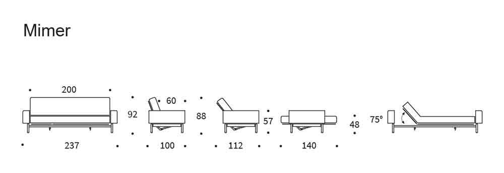 MIMER stel 7-i-1 til madrasser 140x200. Valgfri stof på armlæn.