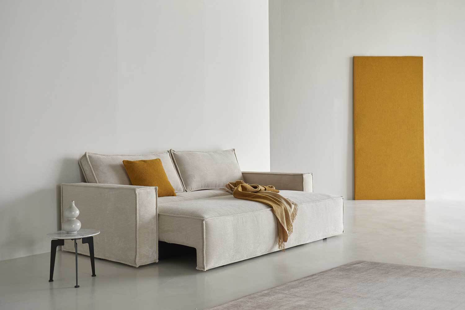 Vores Newilla sovesofa er designet med det praktiske i tankerne. Den har rigelig opbevaringsplads under sofaens sæde, så du kan holde dit opholdsområde pænt og organiseret. Newilla sovesofaens aftagelige betræk gør vedligeholdelsen til en leg; du kan nemt vaske betrækket for at holde det frisk. Og når det er tid til en opfriskning, kan du forny sofaens udseende ved blot at udskifte betrækket.
