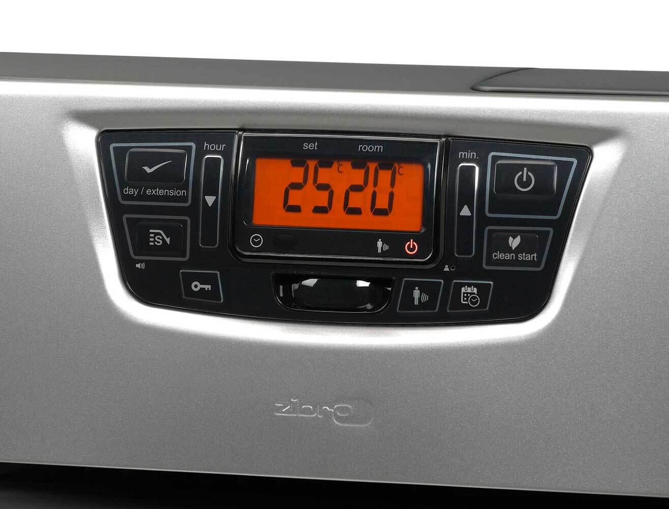 Termostatstyret Zibro Laserovn, der ved hjælp af indbygget ur, kan programmeres til at tænde f.eks. om morgenen. Effekt: 4850W. Tankindhold: 7.6L. Forbrug Max: 0,50 L/timen. Indbygget væltesikring, børnesikring samt save funktion mm. Meget populær Zibro Laser Kamin specielt for de lidt større rum mm.