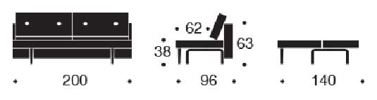 RECAST PLUS sofa. Sædet trækkes frem og ryggen lægges ned, meget nemt. Polstret med Posefjedre madras, med knapper i samme farve som madrassen. Ben i mørkt træ/mat-sort metal. Rygpude er 90cm lang.