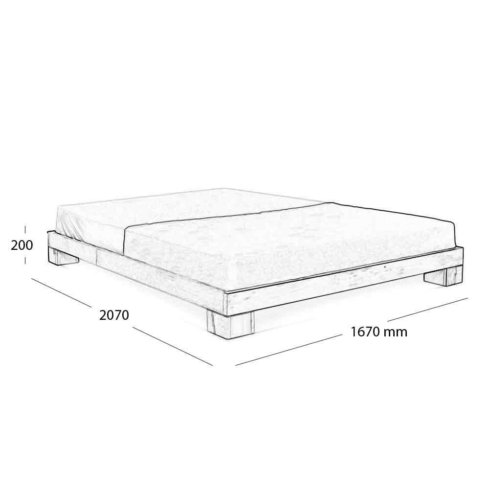 Ydre mål 207*167*20 cm. Frihøjden under stellet 9,9 cm. Madras størrelse 160*200 cm. fra sengekant ned til lameller 4 cm.