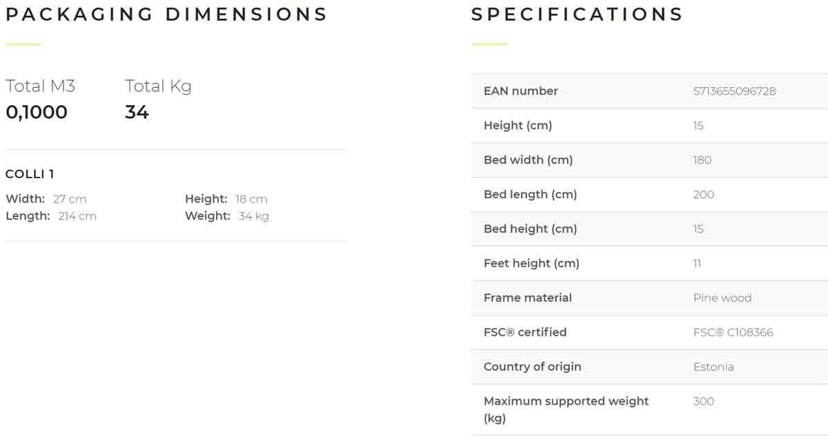 Senza sengeramme 180x200 cm. natur fyrretræ.