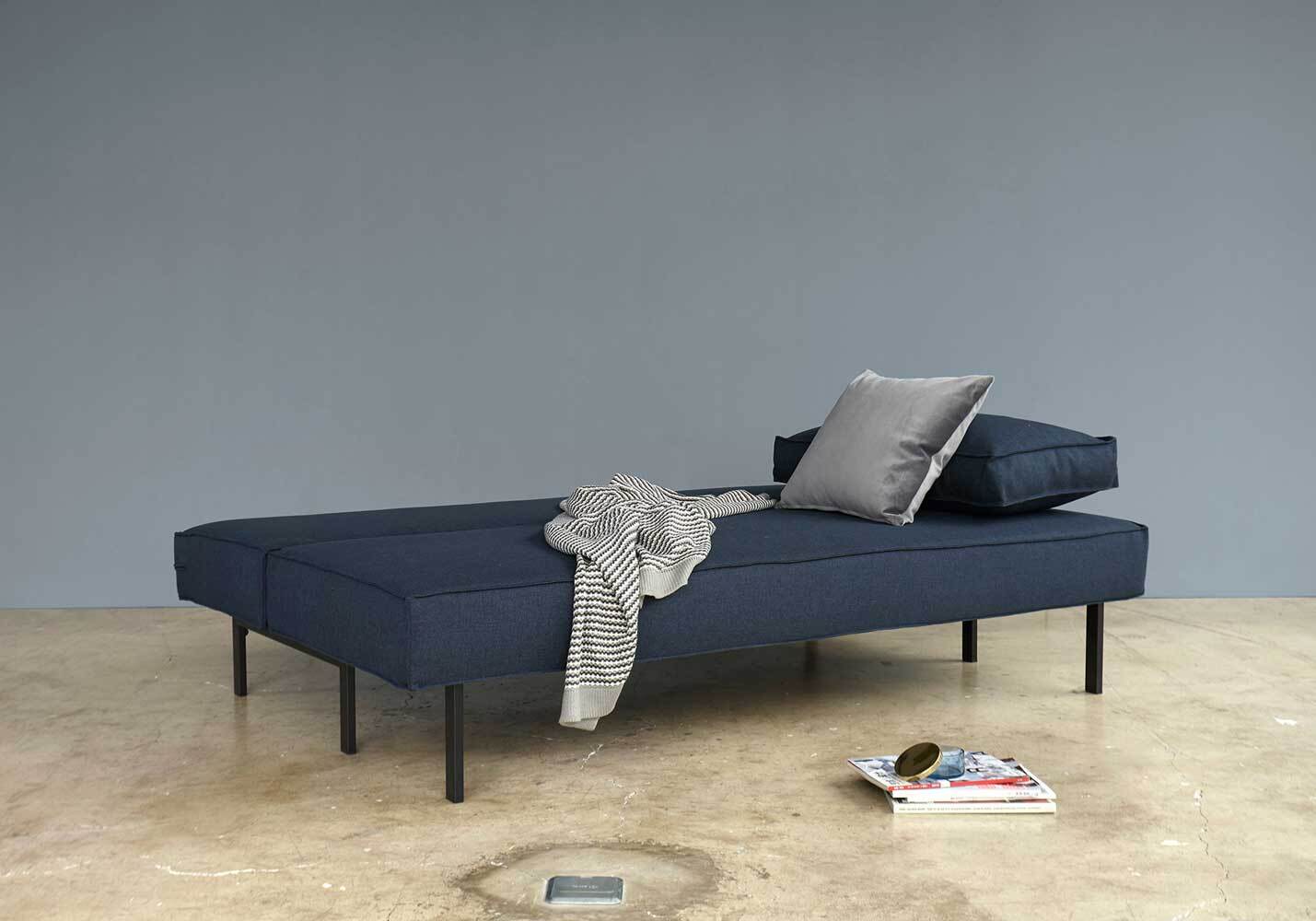 SLY sofa med sorte ben. NICE PRICE Inklusiv sengetøjsopbevaring og 2 puder.
