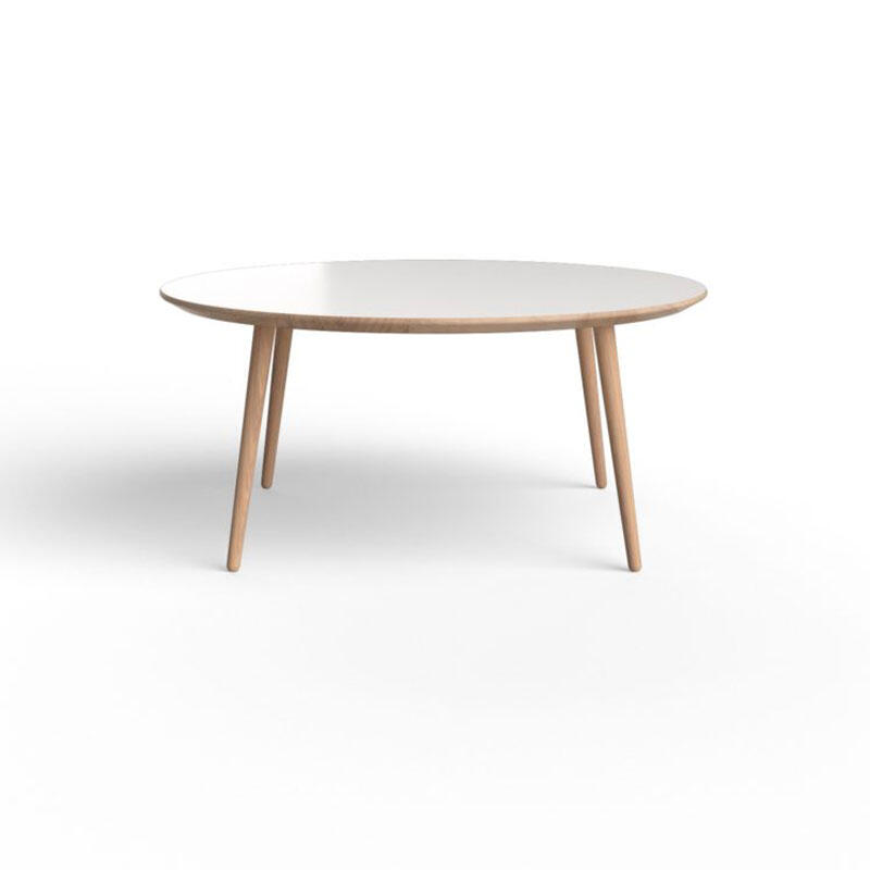 VIA ROUND 90 Hvidolieret er et stort sofabord, der egner sig utroligt godt som et enkeltstående sofabord eller som en perfekt makker til et supplerende VIA sofabord. Det kan med sit enkle nordiske formsprog og mange valgmuligheder passe ind i de fleste indretninger, enten som et perfekt komplement eller som en nødvendig kontrast. En populær størrelse som enkeltstående sofabord, da den både kan stå flot alene, men også passe sammen med de store størrelser i VIA sortimentet.