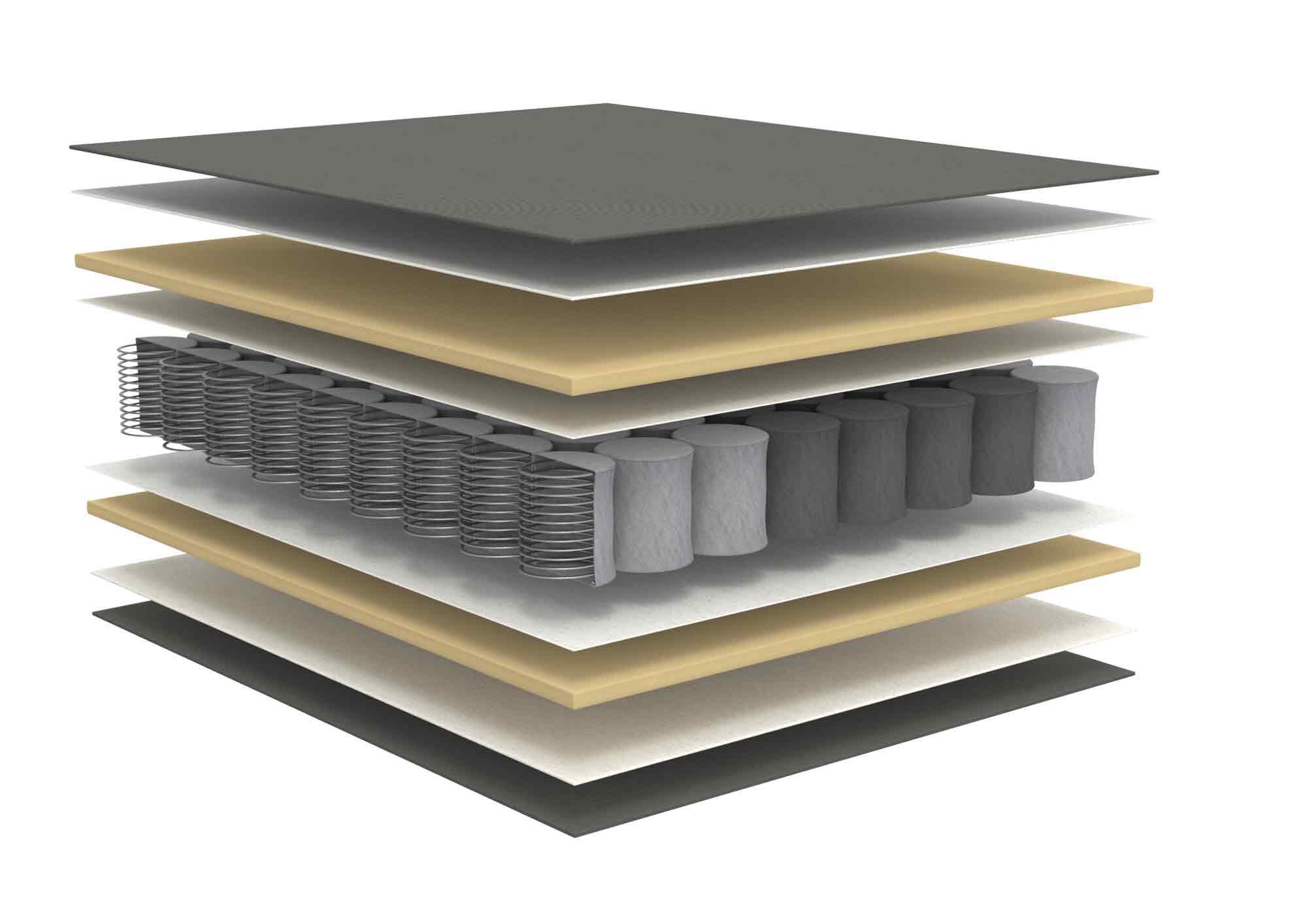 madras størrelse 140x195 cm / madras komfort i høj kvalitet: Posefjeder kombineret med freonfri koldskum. 5 zone multi posefjedre med 650 styk posefjedre pr. m2
