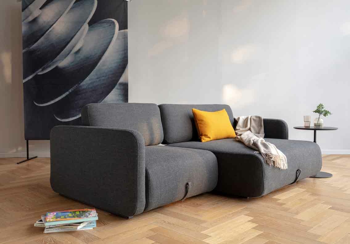 VOGAN sofa (vendbar) med bord i sort, 120x200cm. Valgfrit farve Dess.XXX