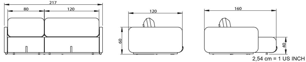 2/5. Sæde 80/pude 147*84*43 cm. - 32,6 Kg - 0,5310 M3