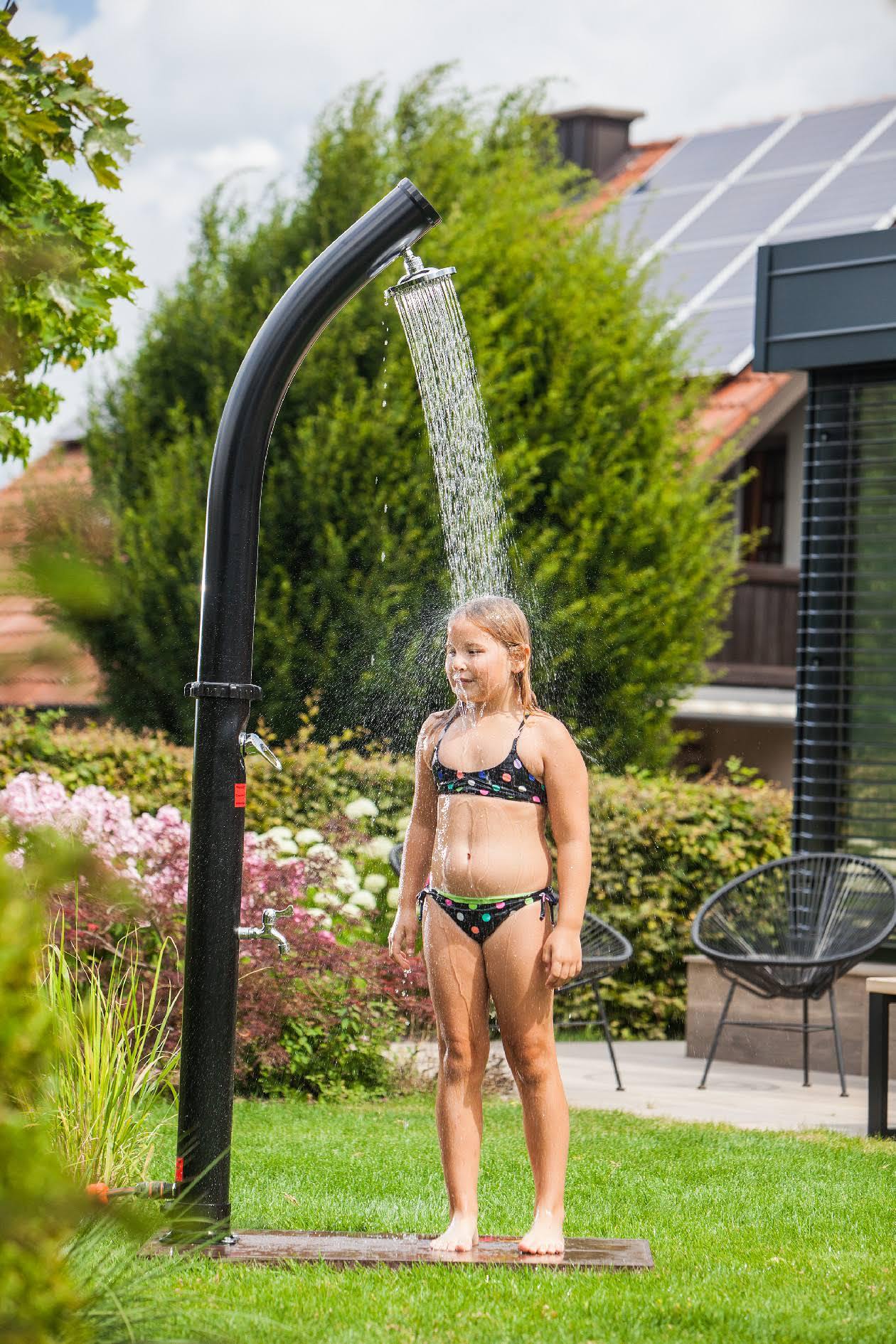 Denne Solar havebruser 20 ltr., der er lavet af PVC, bruges, inden man hopper i poolen for ikke at tilføre for meget snavs til poolen. Bruseren har en vandtank på ca. 20 liter vand, som opvarmes af solen, så du kan nyde et varmt bad næsten helt gratis. Bruseren kommer med koldt/varmt vandregulering.