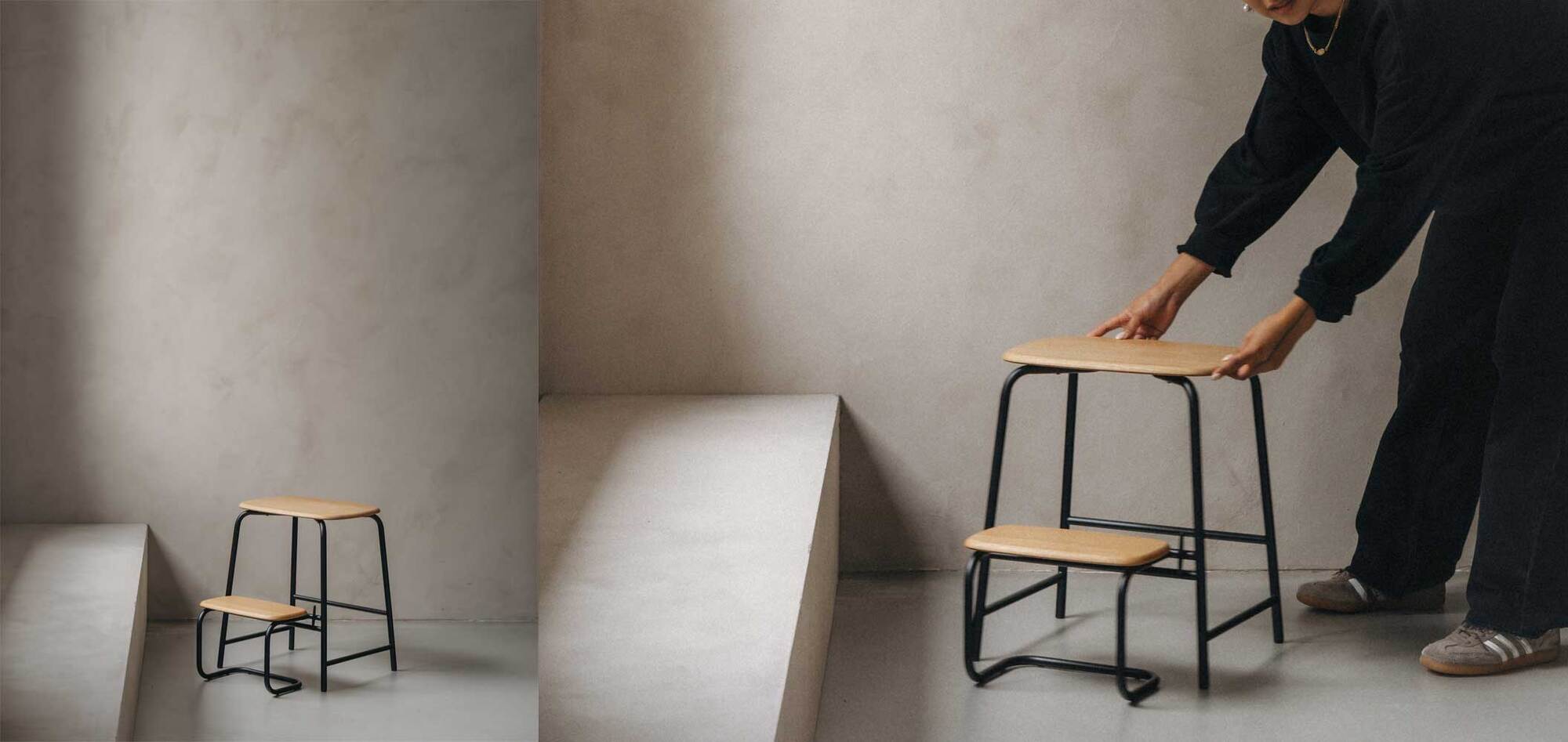 Anders Nørgaard har med inspiration fra 1960’ernes velkendte trappestige/trappestol skabt et multifunktionsmøbel, der kombinerer nordisk minimalisme og familievenlig praktik.