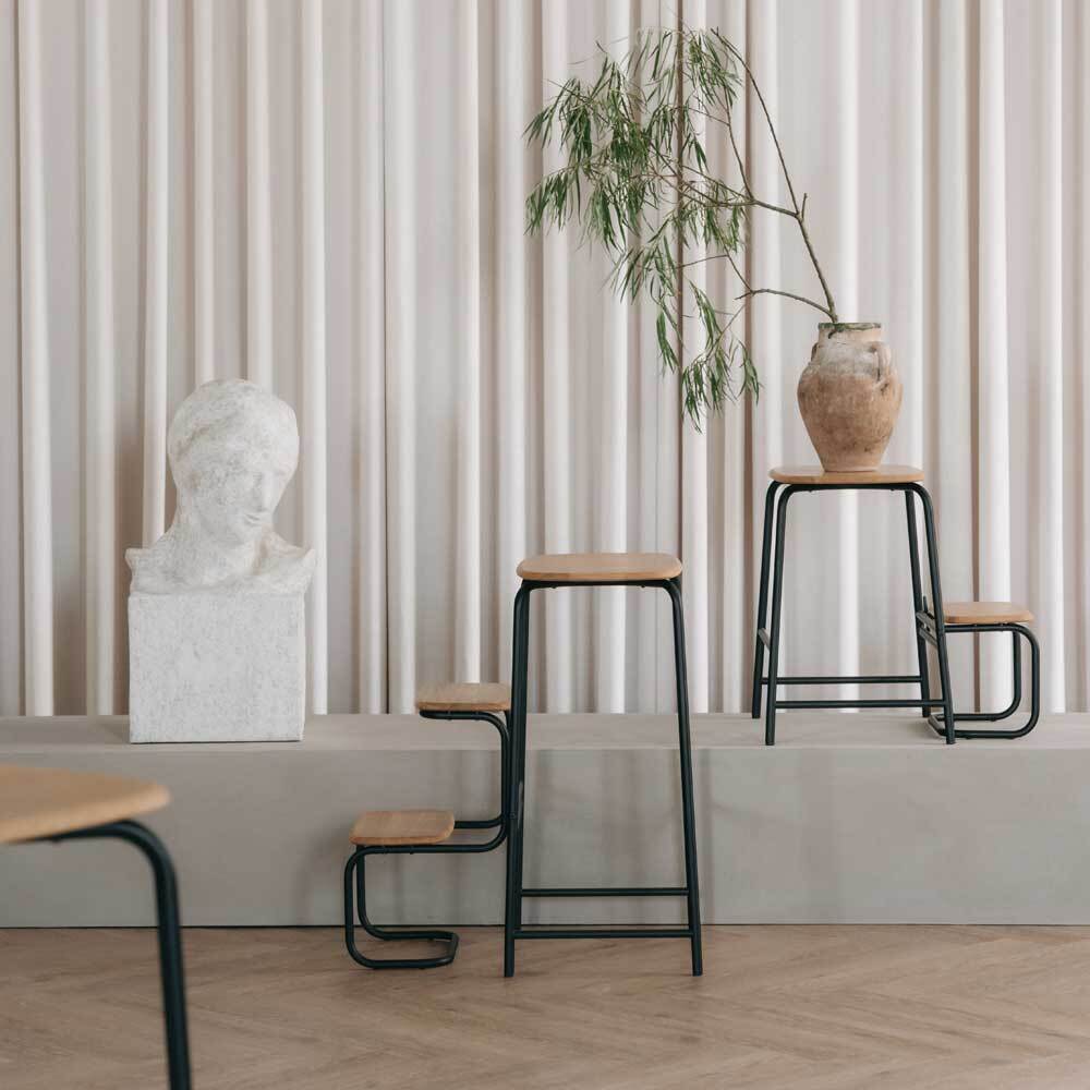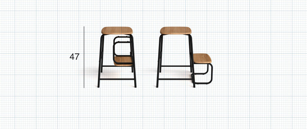 TRAB's design er en sand kunstnerisk fortælling, hvor det grafiske samspil mellem trappe og taburet skaber en helt unik oplevelse og placerer dette produkt i en klasse for sig selv. Med en højde på 47 cm er TRAB alsidig og perfekt til brug ved køkkenøen eller som en ekstra siddeplads, mens trappefunktionen bliver en uundværlig hjælp i situationer med vertikale udfordringer.