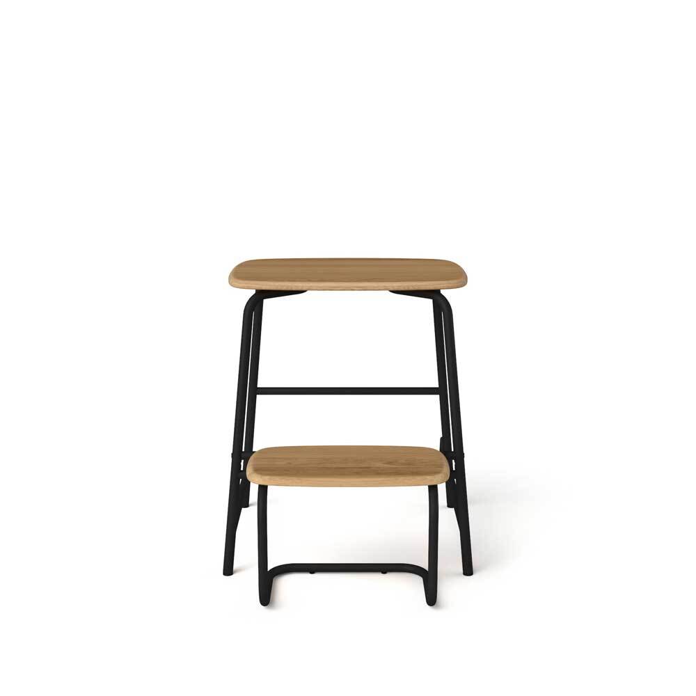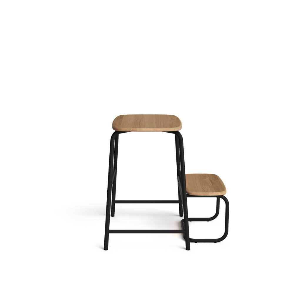 Det slanke stålstel er formet med præcision på topmoderne maskiner, hvilket ikke kun sikrer en luksuriøs trappefunktion, men også garanterer holdbarhed til at modstå hverdagens udfordringer. Sædet og trinene er udført i solidt egetræ, der tilføjer varme og et moderne nordisk touch med deres bløde former.