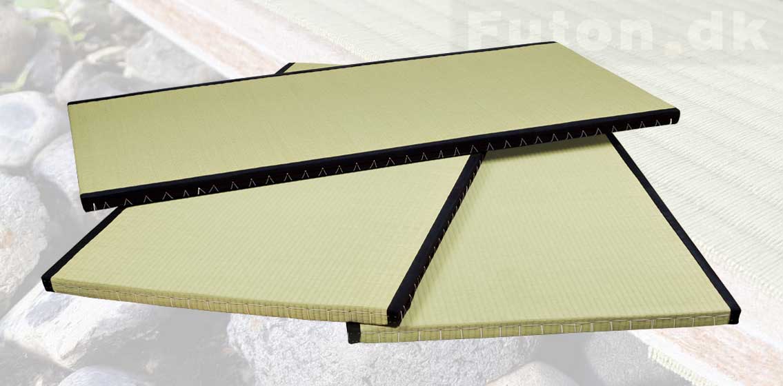 Fyldet er med 10 mm. blandet bomuld og hør, som giver en dejlig fleksibel/blød overflade til YOGA osv. også til at gå på, og som underlag til Futon madrassen, nederst er der 18 mm. kokosnød fiber som er sprøjtet med ren natur latex fra et gummitræ, dette giver en meget luftig undersiden så madras og kroppen kan ånde igennem den. Vi anbefaler at du ser overflader og kantbånd i virkeligheden.
