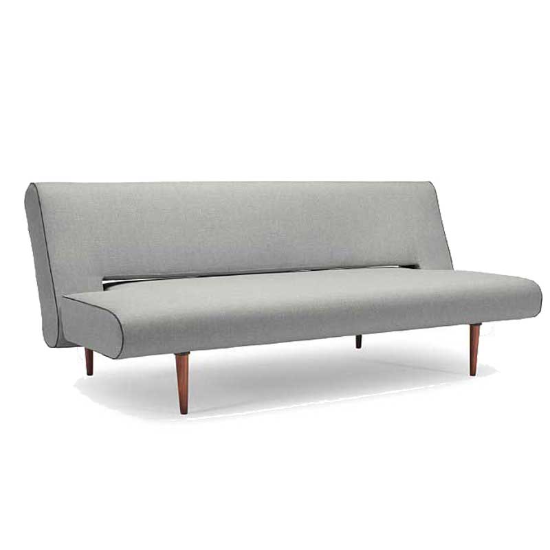 UNFURL sofa polstret med 10 cm. posefjedre madras og ben i mørkt træ. I sofa stilling har UNFURL to indstillinger i ryggen. Frihøjde under stellet 234mm