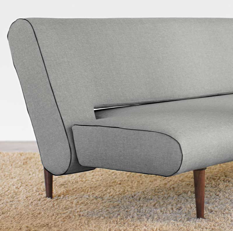 UNFURL sofa polstret med 10 cm. posefjedre madras og ben i mørkt træ. I sofa stilling har UNFURL to indstillinger i ryggen