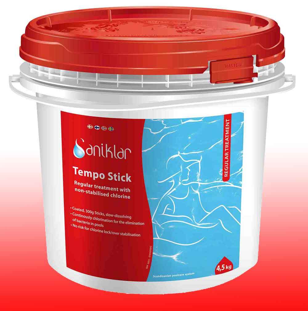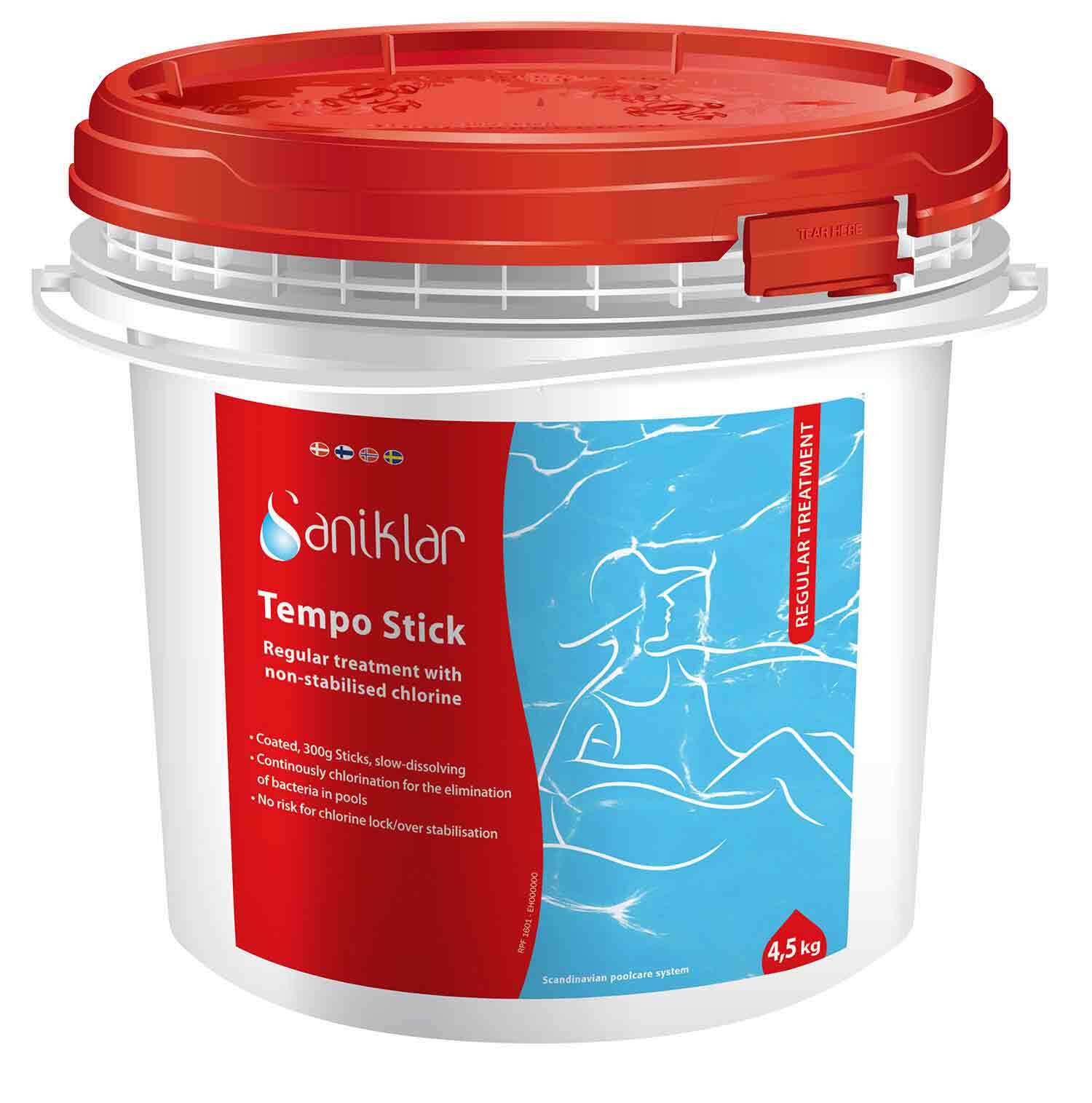Saniklar/HTH Tempo Stick er et moderne desinfektionsmiddel til kontinuerlig dosering af klor til poolen.