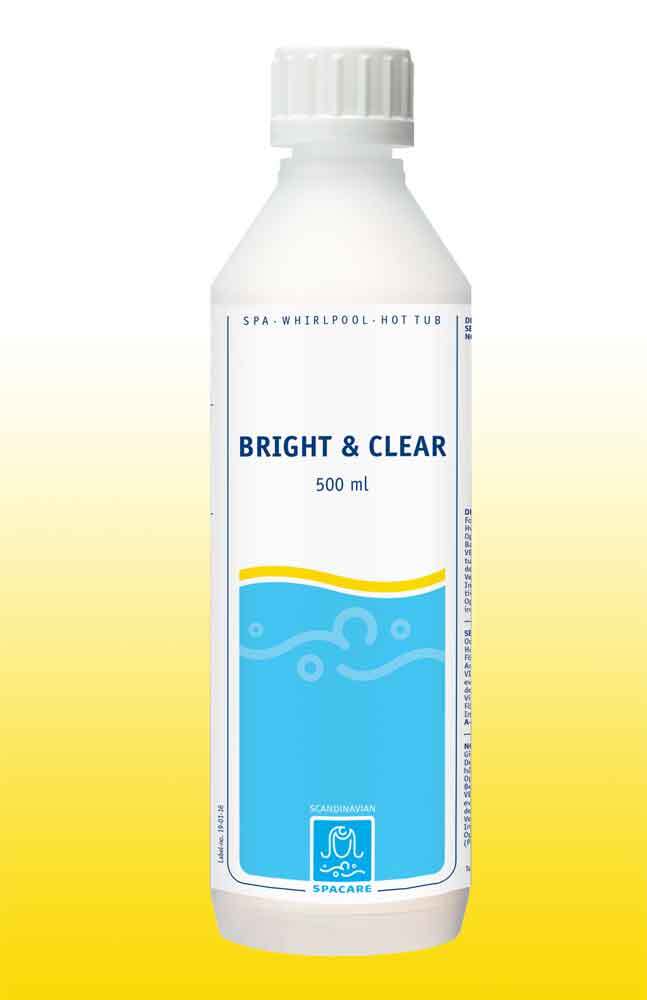 SpaCare Bright & Clear er et flydende flokningsmiddel, som får små partikler i vandet til at samles og gør det muligt for filteret at fjerne dem.