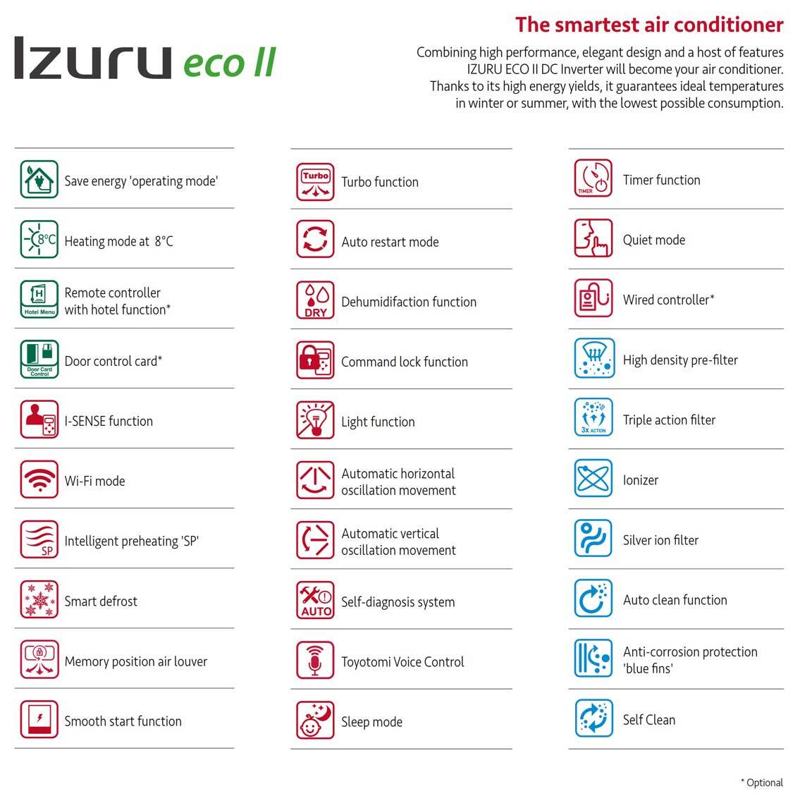 TOYOTOMI varmepumpe - Izuru Eco II TRN/TRG-2135ZR. Kan styres via app - Dækker op til 80 m² kW 0,5 - 4,5